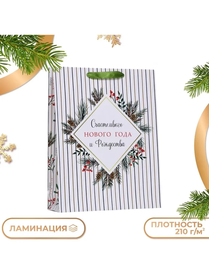 Пакет ламинированный «Счастливого Нового года и Рождества», 33×42×10 см — Характеристики
