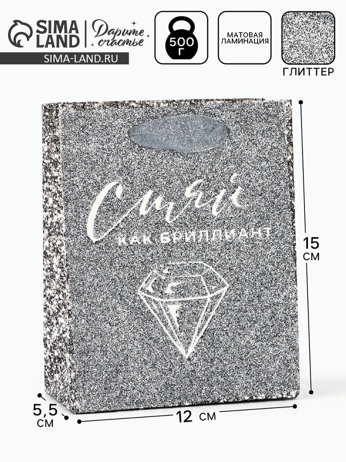 Пакет ламинированный «Сияй», глиттер, S, 12 х 15 х 5.5 см — Характеристики