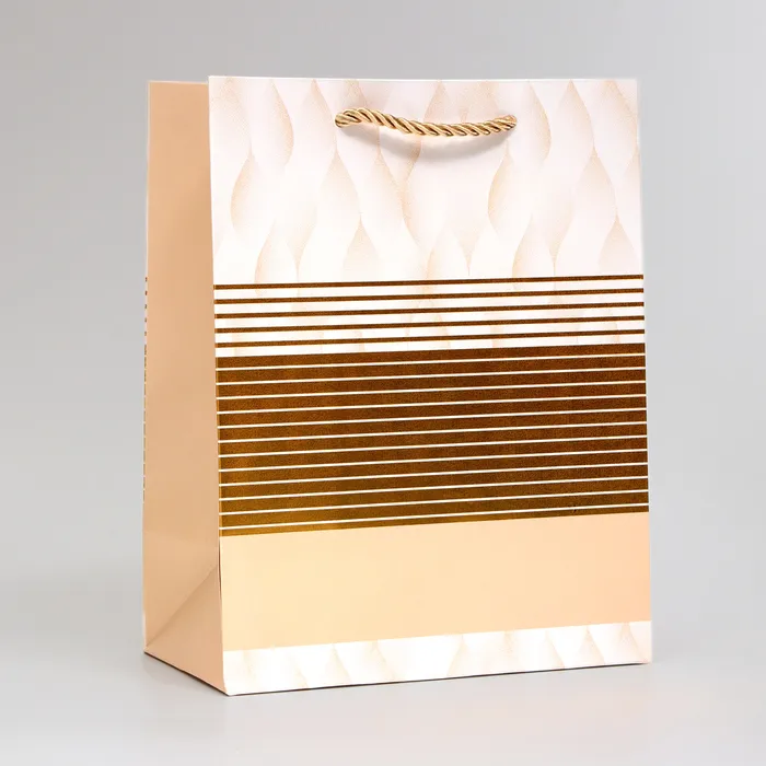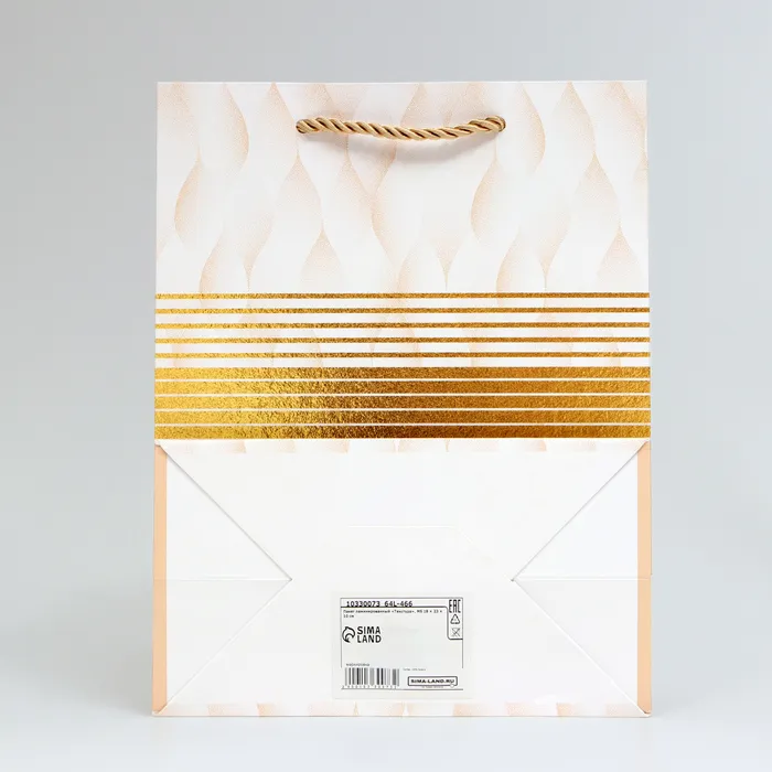- Удобство использования: пакет оснащён прочным картонным дном и ручкой шнур, что облегчает переноску подарка.