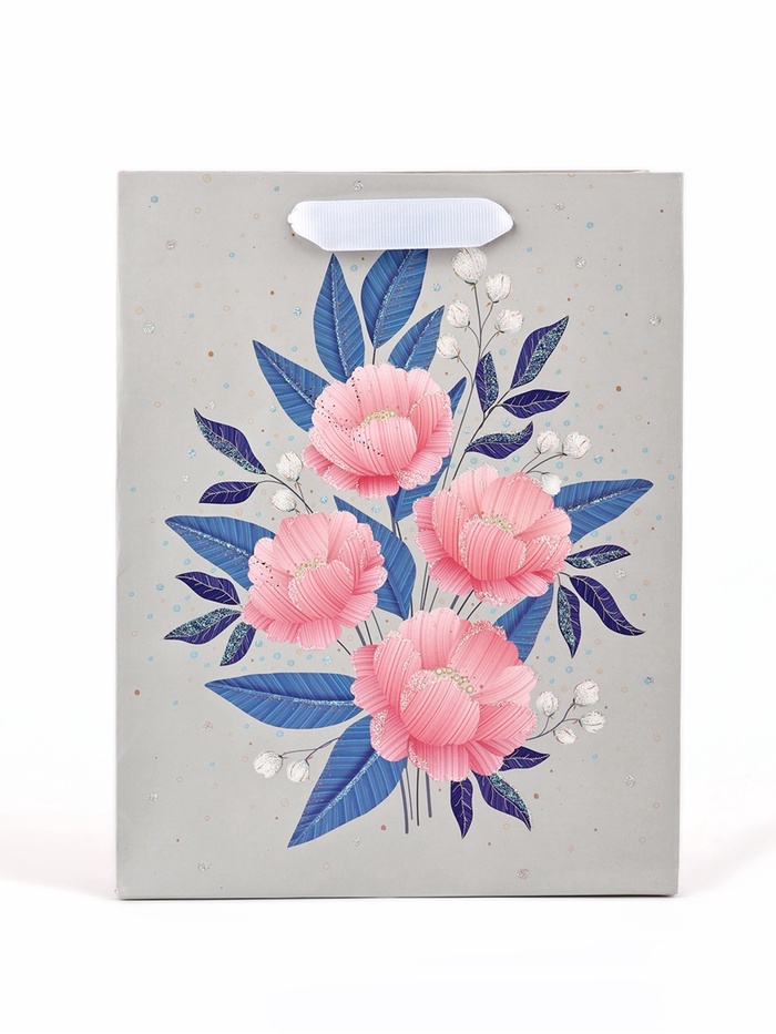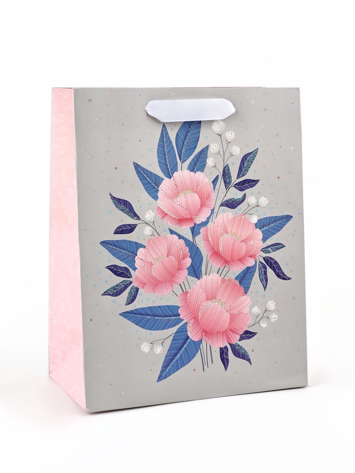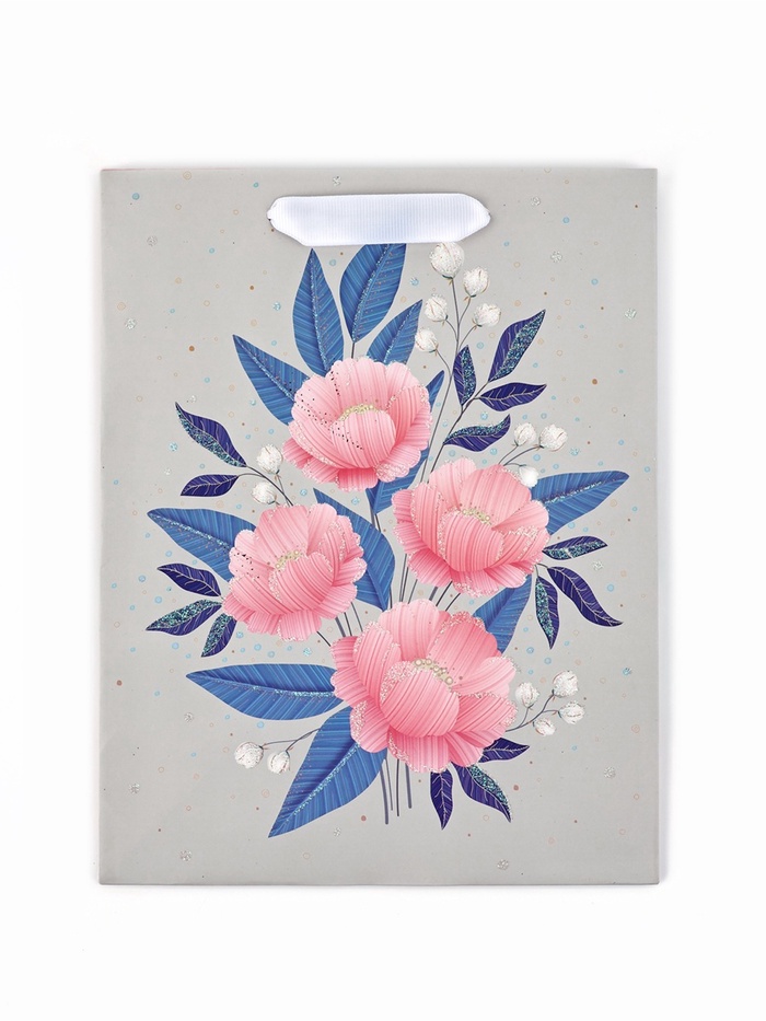 Пакет ламинированный «Цветы», глиттер, 18 х 10 х 23 см — Характеристики