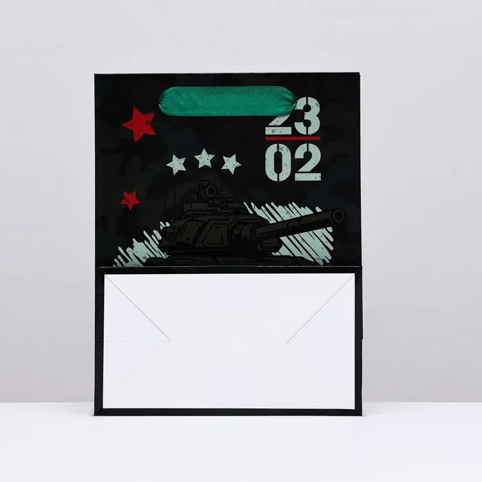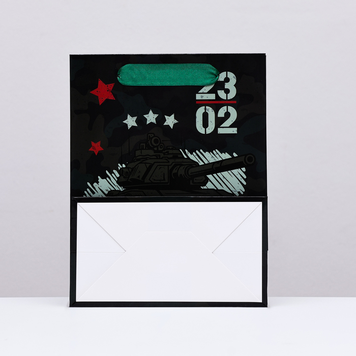 Пакет ламинированный вертикальный "23 февраля, танк", 18×23×10 см — Характеристики