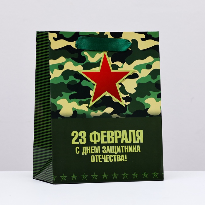 Пакет ламинированный вертикальный "23 февраля, звезда", 18×23×10 см — Характеристики