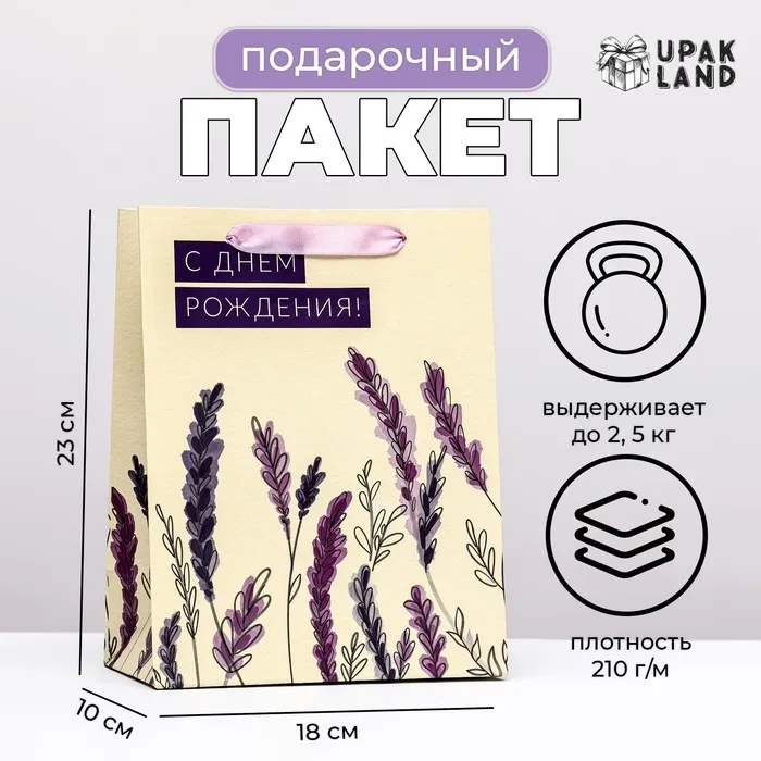 Пакет ламинированный вертикальный «Лаванда», 18×23×10 см — Характеристики