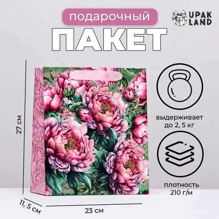 Пакет ламинированный вертикальный «Нежность пиона», 23×27×11.5 см — Характеристики