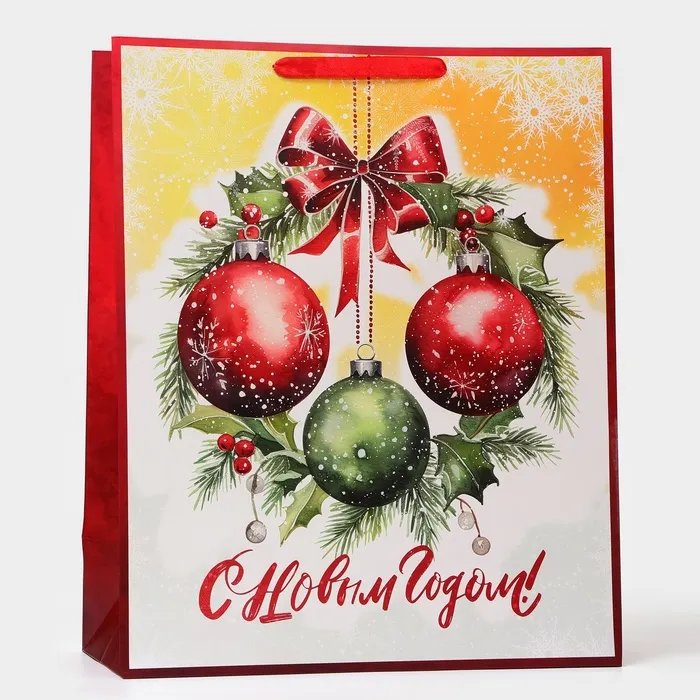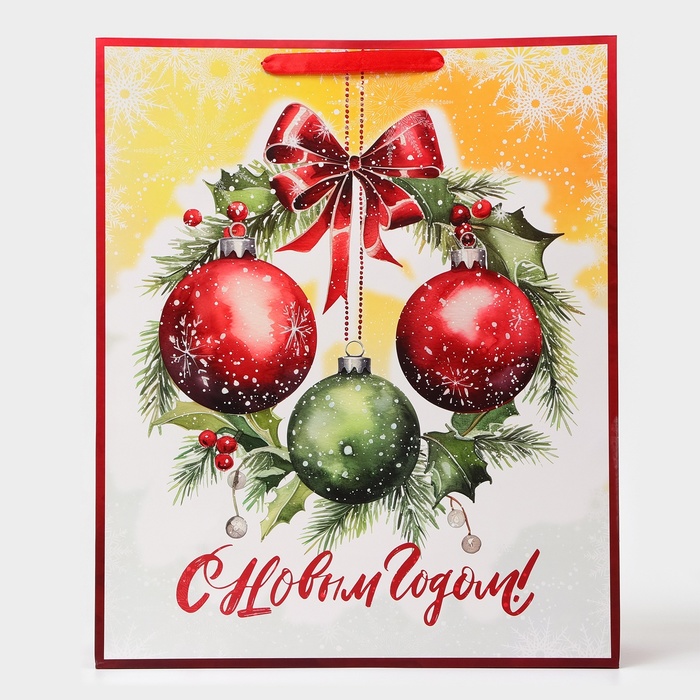 Пакет ламинированный вертикальный «Новгодние шары», XL 40×49×19 см — Характеристики
