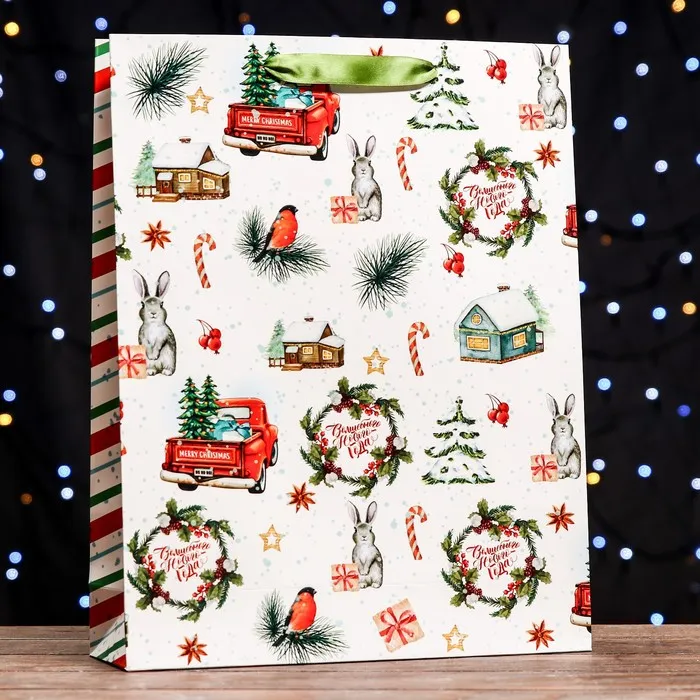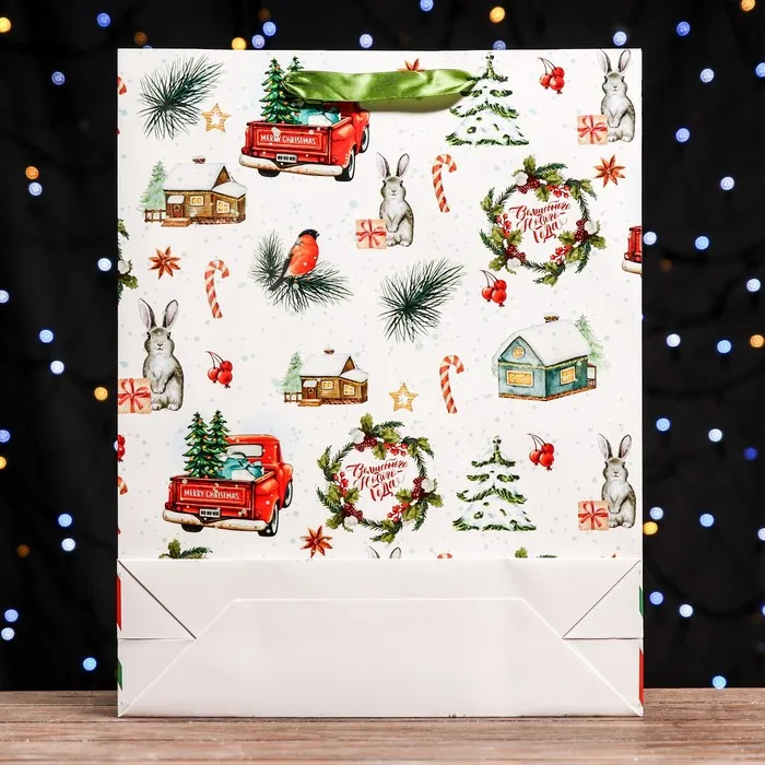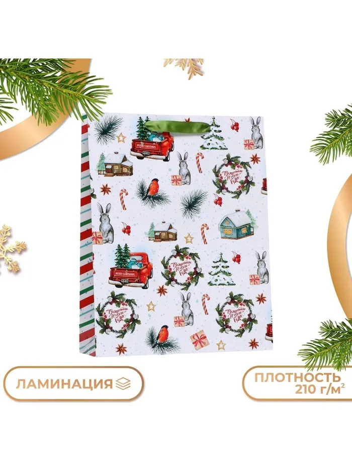 Стильный новогодний пакет с ламинацией используют как упаковку для подарка. Благодаря своему оригинальному дизайну и привлекательному внешнему виду он создаст праздничное настроение получателю и не оставит его равнодушным.