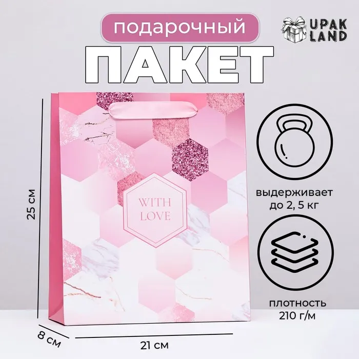 Пакет ламинированный вертикальный «С любовью», 21×25×8 см — Характеристики