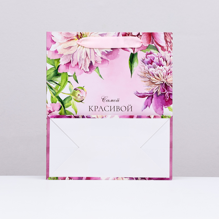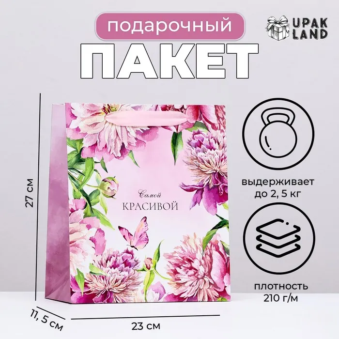 Пакет ламинированный вертикальный "Самой красивой, пионы", 23×27×11.5 см — Характеристики