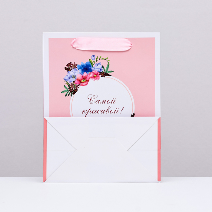 Пакет ламинированный вертикальный "Самой красивой, цветочки", 18×23×10 см — Характеристики