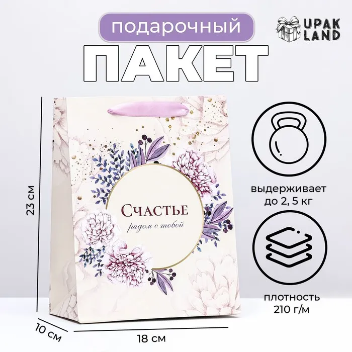 Пакет ламинированный вертикальный «Счастье рядом с тобой!», 18×23×10 см — Характеристики