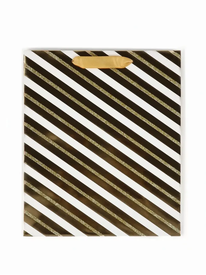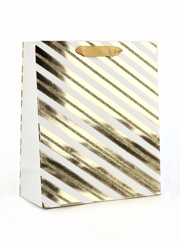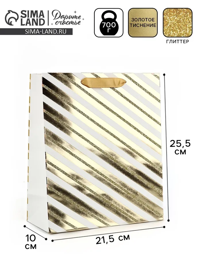 Пакет ламинированный «Золотые полосы», тиснение, глиттер, 21.5 х 10 х 25.5 см — Характеристики
