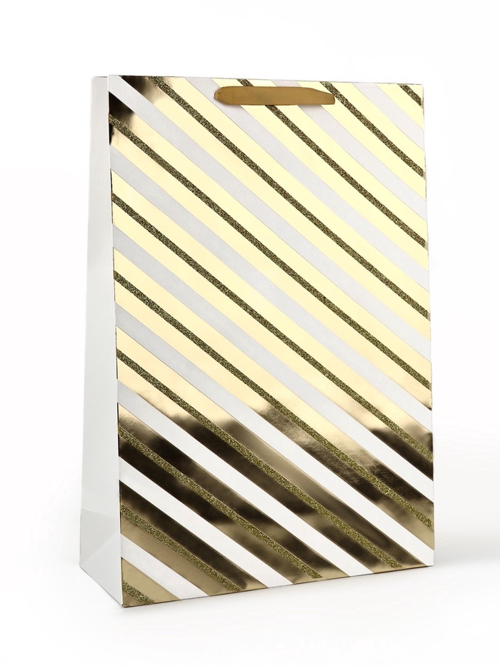 Пакет ламинированный «Золотые полосы», тиснение, глиттер, 31 х 12 х 45 см — Характеристики
