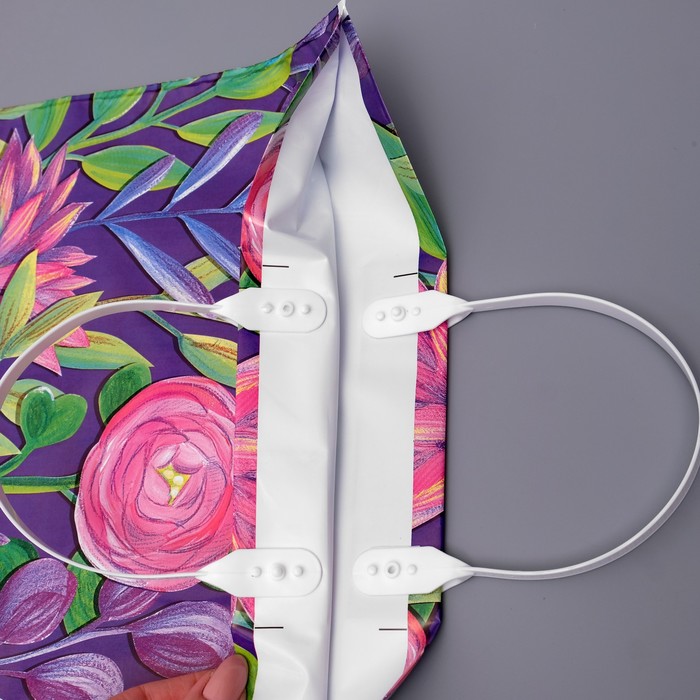Пакет имеет прочные ручки и донную складку, что делает его более вместительным.