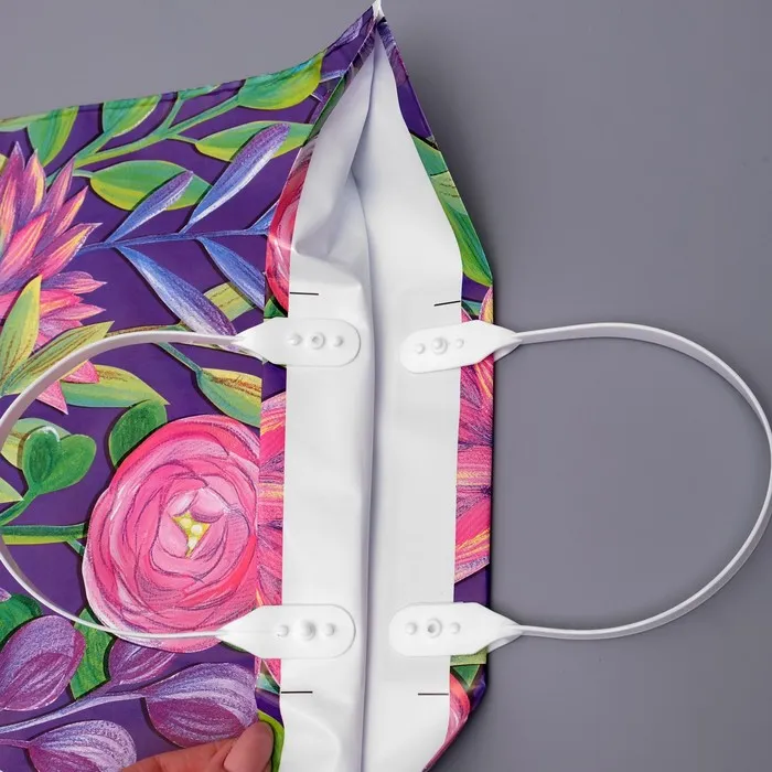 Красочный пакет с рисунком для фасовки, упаковки товаров с петлевой ручкой из пластика.