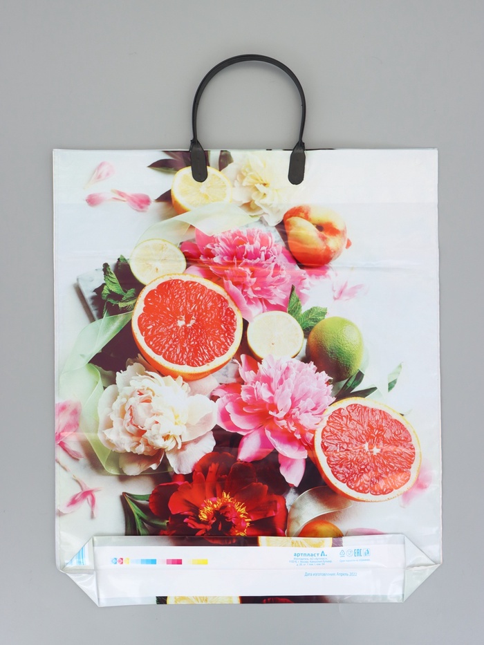 Пакет "Летний цитрус", полиэтиленовый с пластиковой ручкой, 38 х 45 + 3 см, 90 мкм — Характеристики