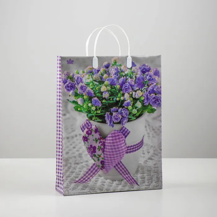 Пакет "Лиловое сердце", мягкий пластик, 30 х 9 х 40 см, 140 мкм — эксклюзивный товар «2 в 1», так как сочетает в себе пластиковую сумку для бытовых и хозяйственных нужд и подарочный пакет универсального назначения.