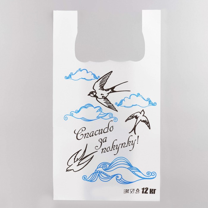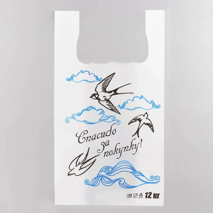 Лёгкость и хорошие вести в каждой покупке! Белый пакет-майка с изображением ласточки — это элегантная упаковка с символичным дизайном. Образ птицы, несущей добрые вести, добавляет покупке особое значение.