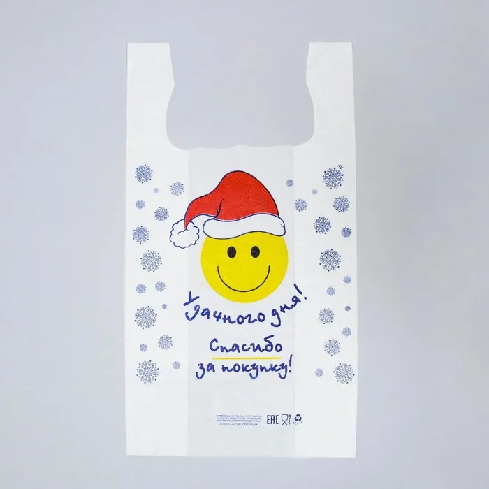 Пакет майка, полиэтиленовый, новогодний, "Удачного дня", белый 26 х 48 см. — Характеристики
