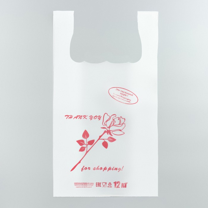 Пакет майка, полиэтиленовый "Спасибо за покупку", белый 26 х 48 см, 9 мкм — Характеристики
