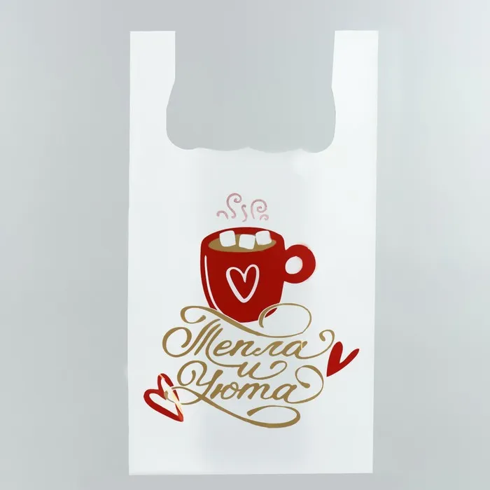 Пакет майка, полиэтиленовый «Тепла и уюта», белый 26×48 см, 12 мкм — Характеристики
