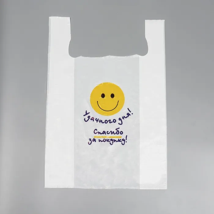 Пакет майка, полиэтиленовый «Удачного дня», белый, 42×64 см, 28 мкм — Характеристики