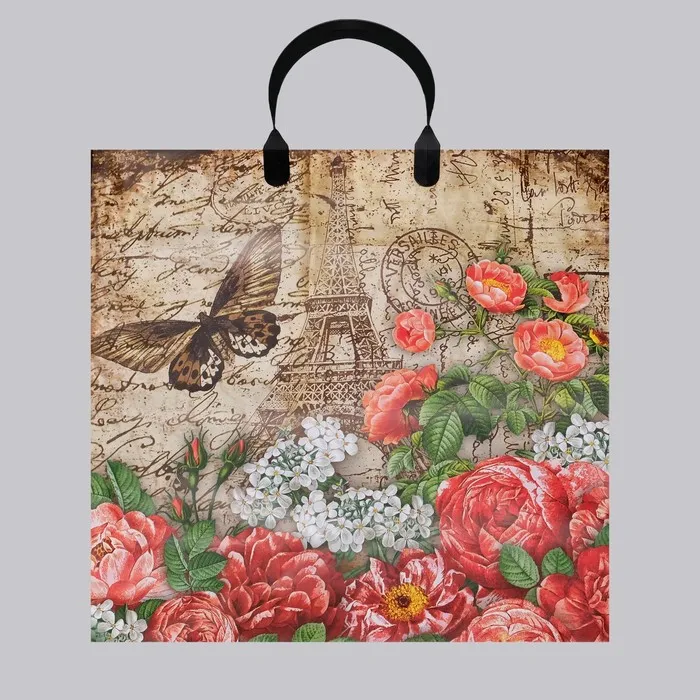 Пакет полиэтиленовый с пластиковой ручкой, благодаря ручкам пакет служит дольше. Прочный и надежный с оригинальным рисунком.