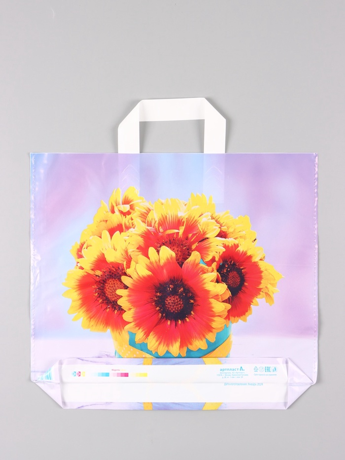 - Плотный материал ПВД 70 мкм: Прочный полиэтилен не рвется по швам и не деформируется от тяжести. Глянцевая поверхность ярко передает насыщенный сиреневый цвет и делает дизайн еще выразительнее.