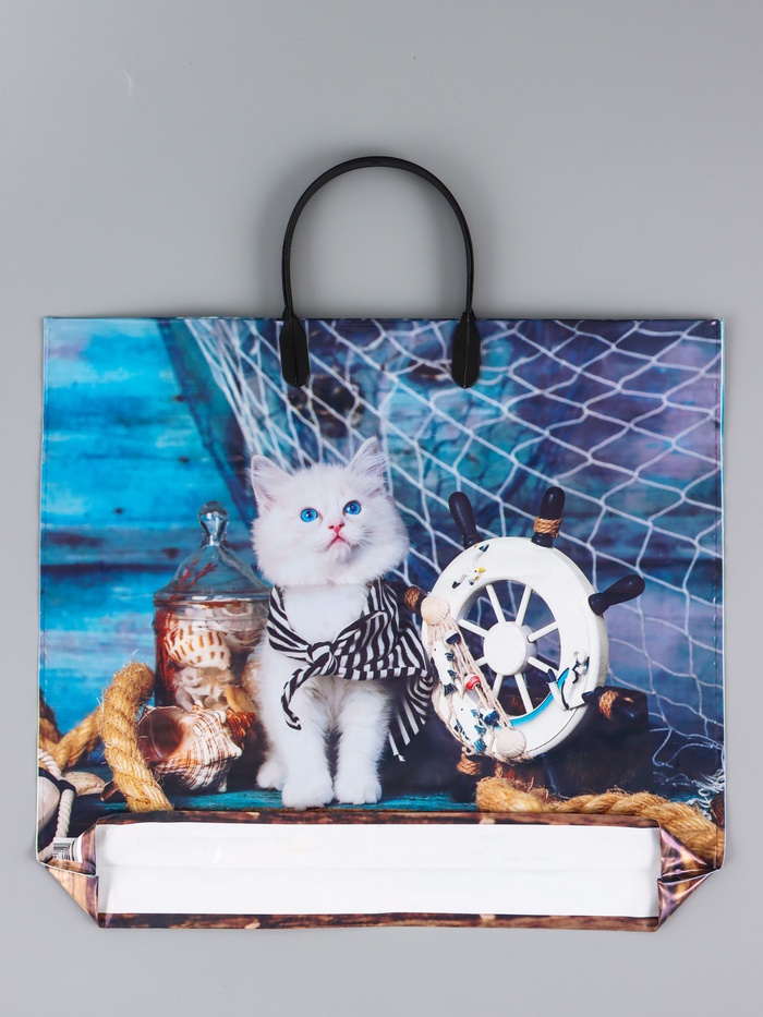 Морская прочность для особых подарков. Пакет «Матроскин» с пластиковой ручкой, 38x34 см — это сверхплотная и вместительная упаковка с тематическим дизайном. Ее усиленная конструкция и морские мотивы созданы для ценных подарков женщинам и девочкам.