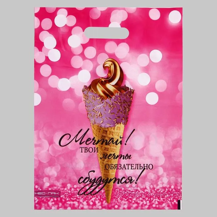 Сладкие мечты в стильной упаковке! Пакет «Мечта» с вырубной ручкой — это нежная и прочная упаковка с кондитерским дизайном. Сочетание повышенной плотности и романтичного рисунка делает его идеальным для подарков со сладостями и косметикой.