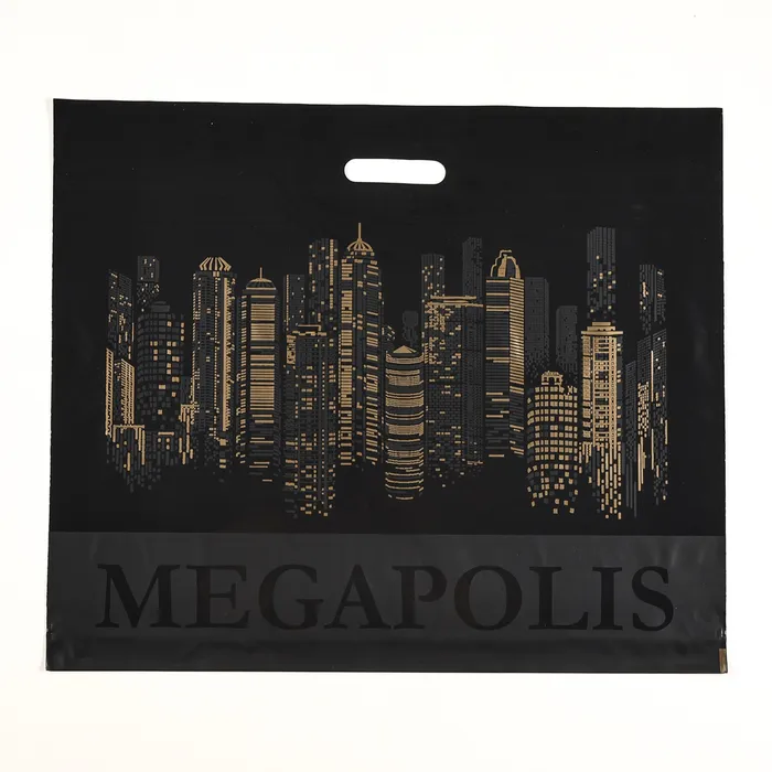Пакет «Мегаполис» черная, полиэтиленовый с вырубной ручкой, 60×50 см, 70 мкм