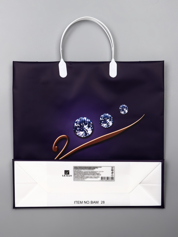 Пакет имеет гладкую поверхность, которая позволяет легко и аккуратно упаковывать товары. Он также оснащен удобными ручками, которые облегчают процесс переноски.