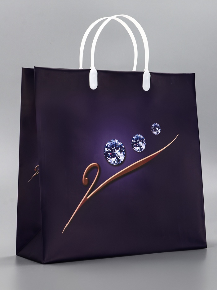 Пакет имеет гладкую поверхность, которая позволяет легко и аккуратно упаковывать товары. Он также оснащен удобными ручками, которые облегчают процесс переноски.