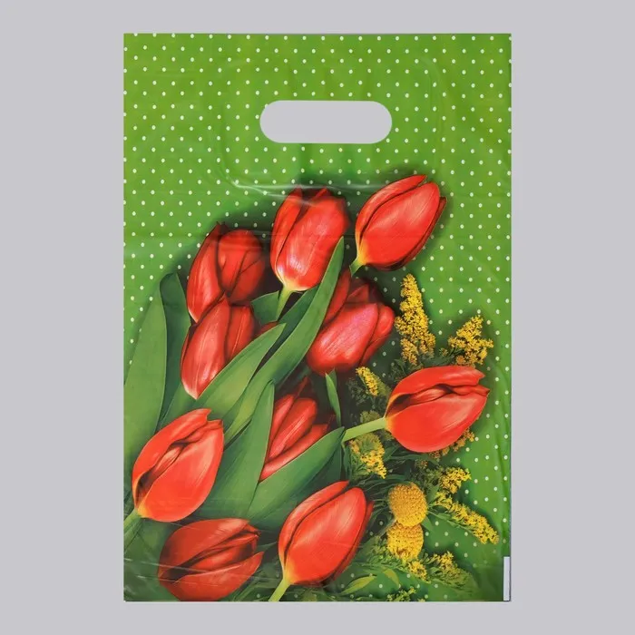 Пакет полиэтиленовый с вырубной ручкой, прочный с оригинальным рисунком.