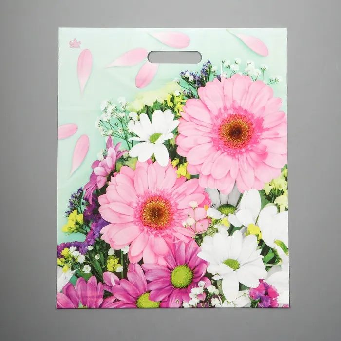 Пакет «Нежные герберы», полиэтиленовый с вырубной ручкой, 38×45 см, 60 мкм — Характеристики