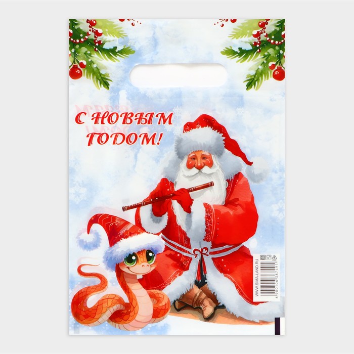 Пакет новогодний «Дед мороз и змейка Символ года», полиэтиленовый с вырубной ручкой, упаковка, 20×30 см — Характеристики