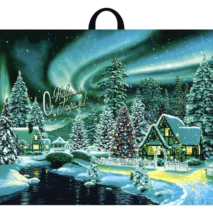Пакет новогодний «Дивный лес», полиэтиленовый с петлевой ручкой, 71×55 см — Характеристики