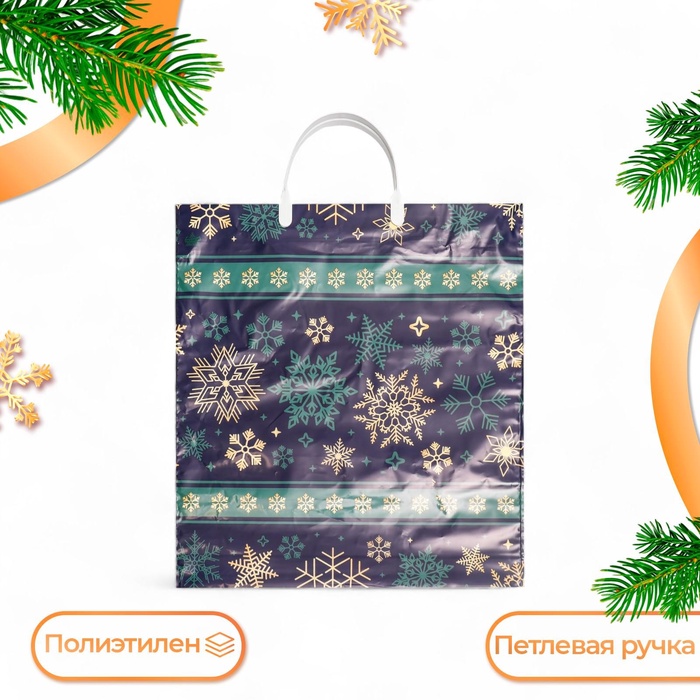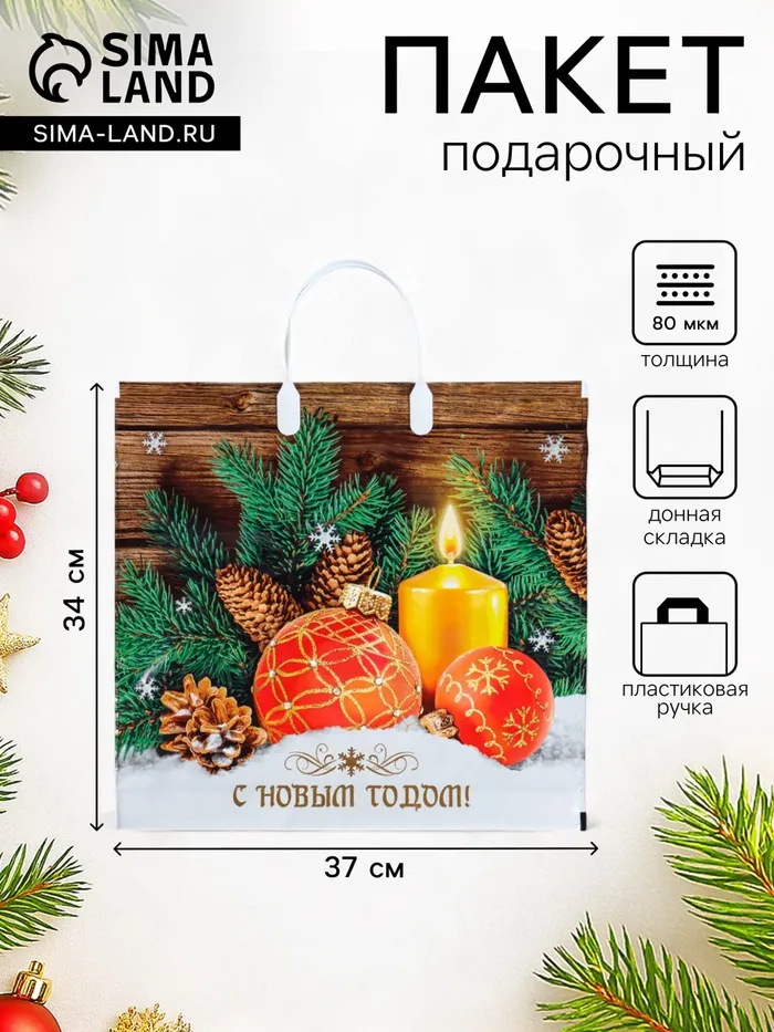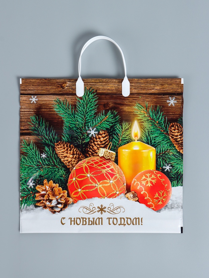 Пакет новогодний «Домашнее тепло», полиэтиленовый с пластиковой ручкой, 37×34 см — Характеристики