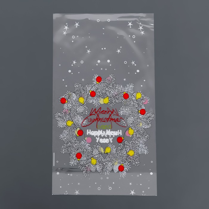 Пакет новогодний фасовочный БОПП, с донной складкой, «Венок» 20×35 см — Характеристики