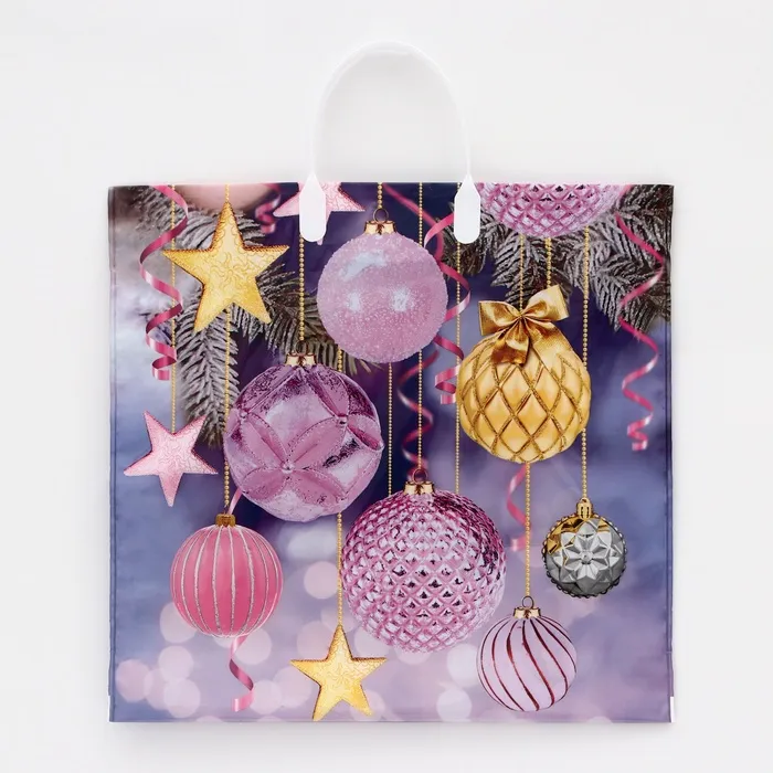 - Прочный полиэтилен (90 мкм): Выдерживает до 3 кг, не рвется при переноске. Надежно защитит содержимое, сохраняя праздничный вид.