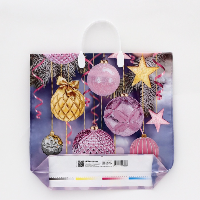 - Прочный полиэтилен (90 мкм): Выдерживает до 3 кг, не рвется при переноске. Надежно защитит содержимое, сохраняя праздничный вид.