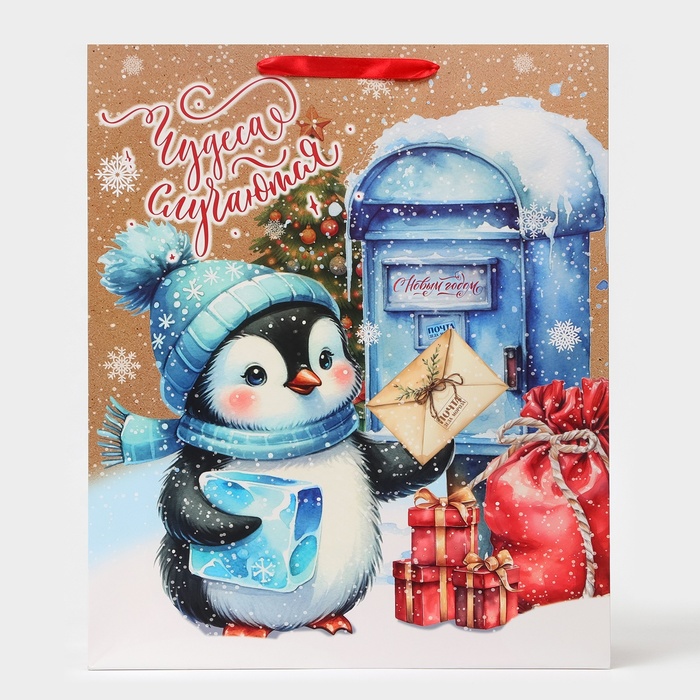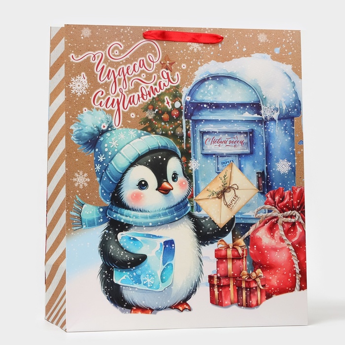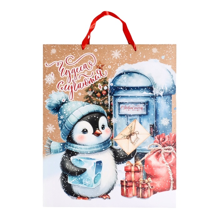 Пакет новогодний ламинированный вертикальный «Пингвинёнок», XL 40×49×19 см — Характеристики