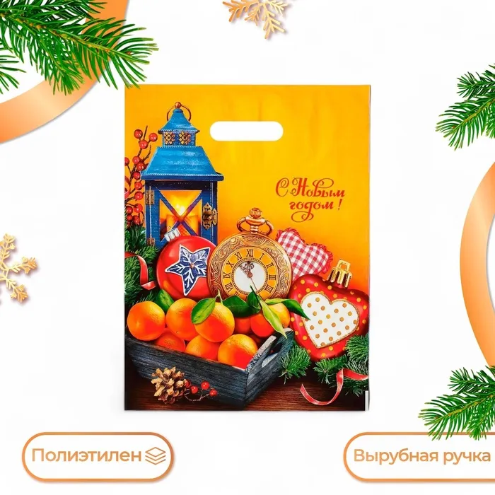 Пакет новогодний «Мандарины», полиэтиленовый с вырубной ручкой, 31×40 см — Характеристики