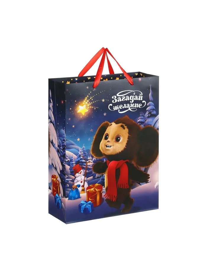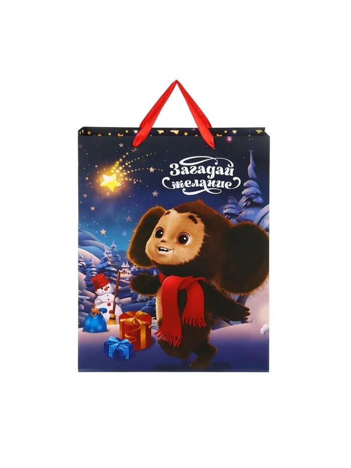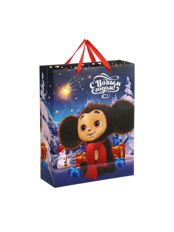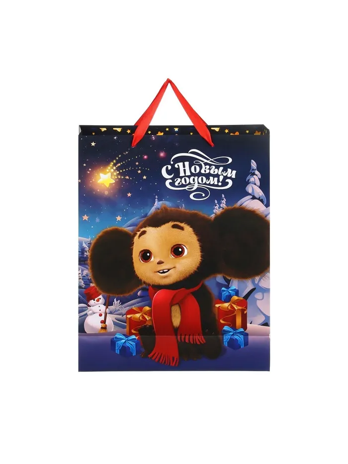 Пакет новогодний подарочный, 31 х 40 х 11.5 см, упаковка, Чебурашка — Характеристики
