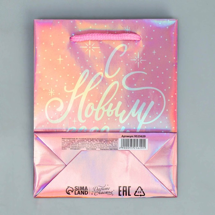 Пакет новогодний подарочный голографический «Нежность», S 12 х 15 х 5.5 см — Характеристики
