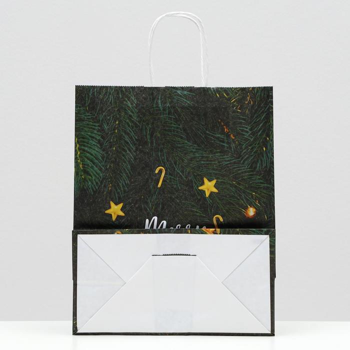 Пакет новогодний подарочный крафт «Снегопад», 22×12×27 см — Характеристики