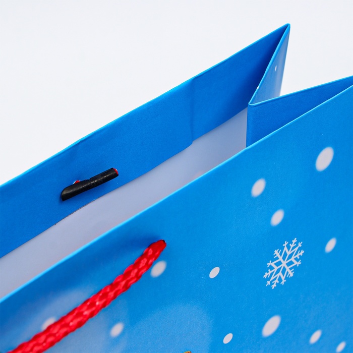 Пакет имеет плотную структуру и приятную на ощупь поверхность, что делает его удобным в использовании. Он украшен яркими новогодними узорами и изображениями, которые создают атмосферу праздника и волшебства.