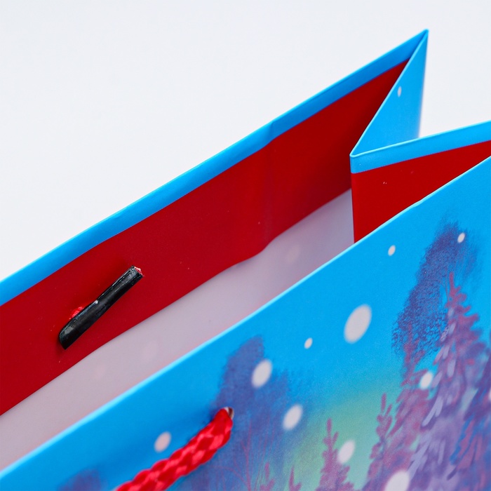 Пакет имеет плотную структуру и приятную на ощупь поверхность, что делает его удобным в использовании. Он украшен яркими новогодними узорами и изображениями, которые создают атмосферу праздника и волшебства.