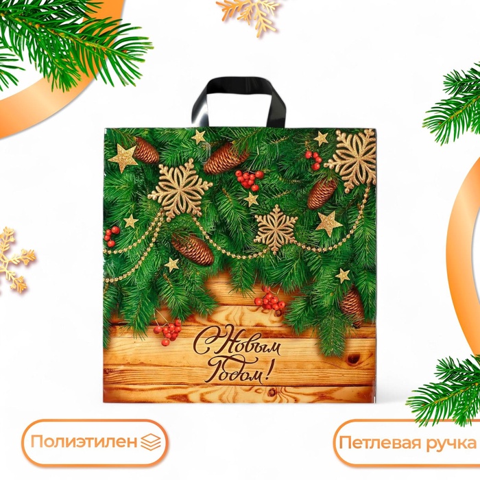 Яркий акцент новогоднего подарка! Праздничный пакет с петлевой ручкой (44х44 см) — прочная и вместительная упаковка для подарков, конфет и новогодних сюрпризов. Годится для многоразового использования — после праздников легко сложить до следующего года.