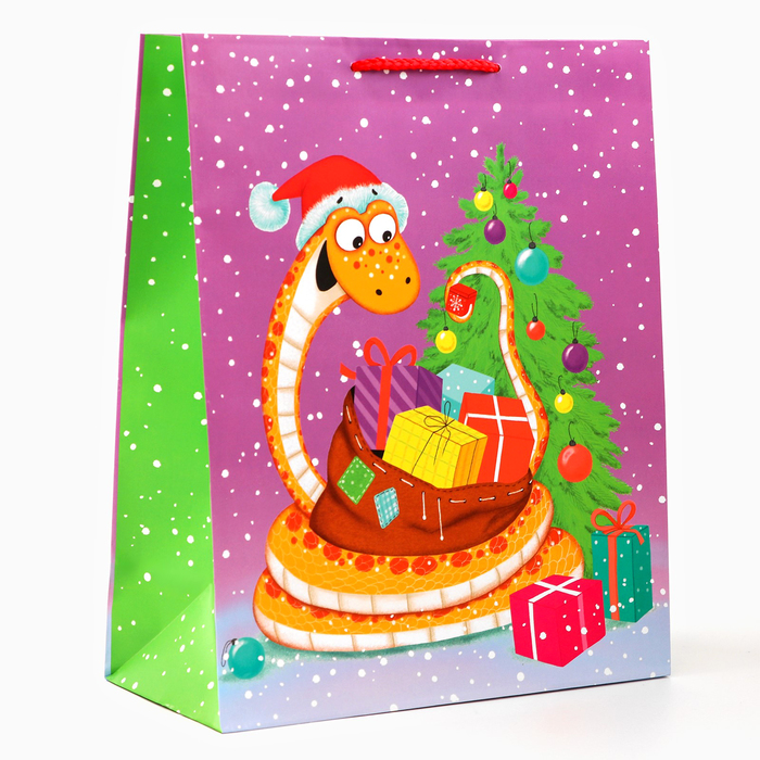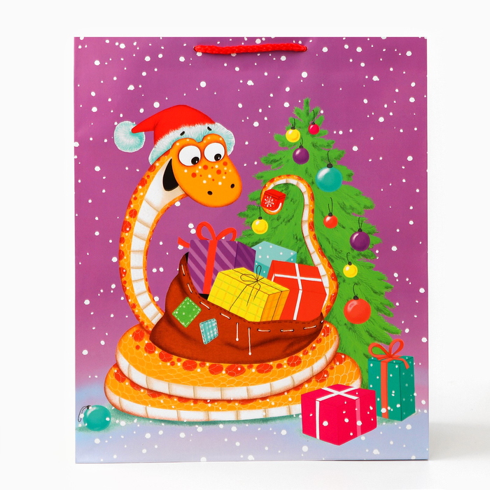 Пакет новогодний подарочный «Счастливая змея Символ года», упаковка, 26×32×12 см — Характеристики
