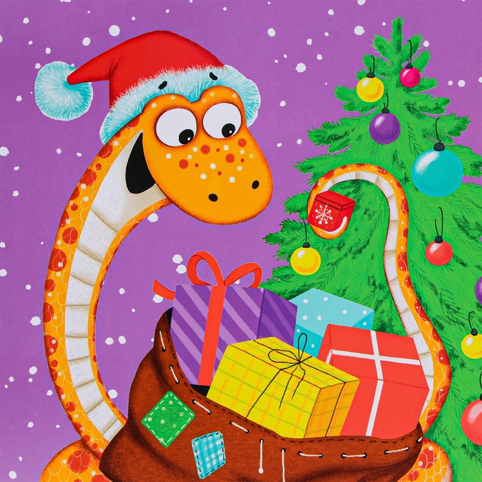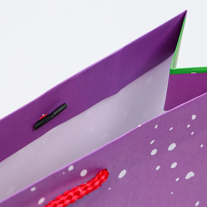 Пакет имеет плотную структуру и приятную на ощупь поверхность, что делает его удобным в использовании. Он украшен яркими новогодними узорами и изображениями, которые создают атмосферу праздника и волшебства.